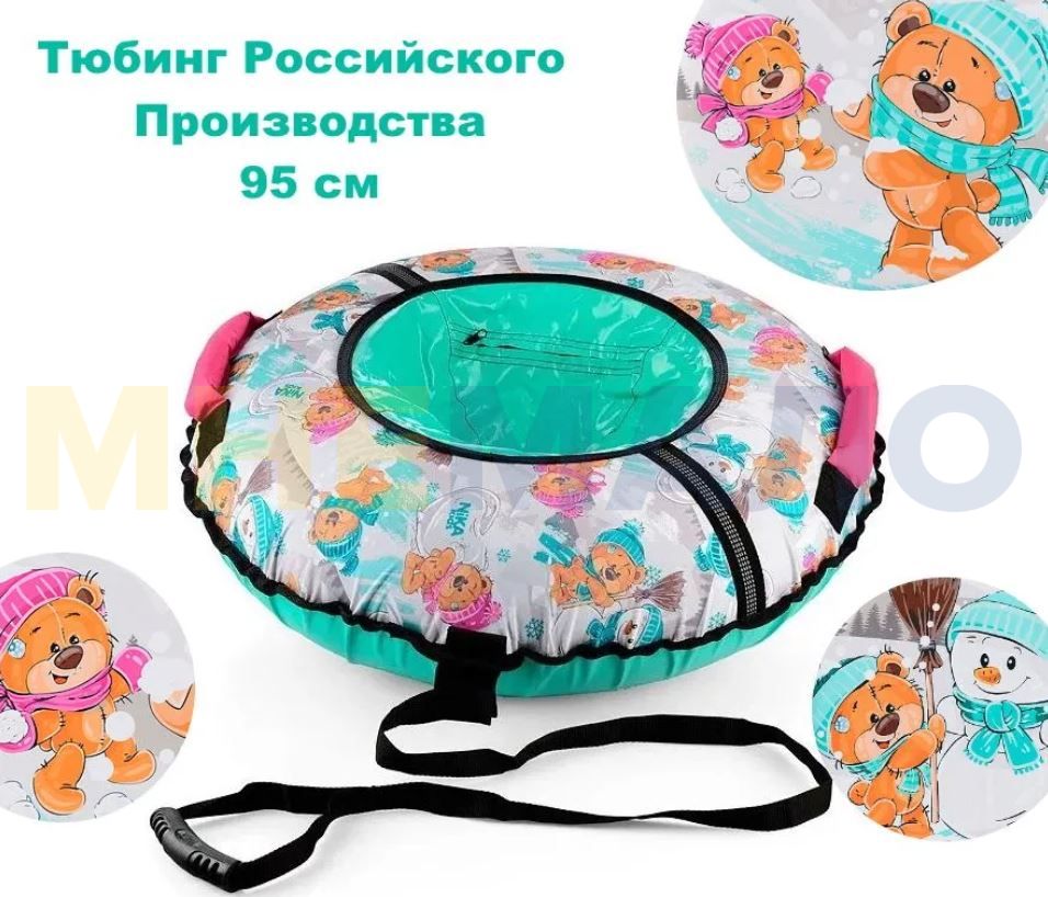 ТБ2К-95/ЗМ Надувная ватрушка (тюбинг) 95см с забавными медвежатами с автокамерой